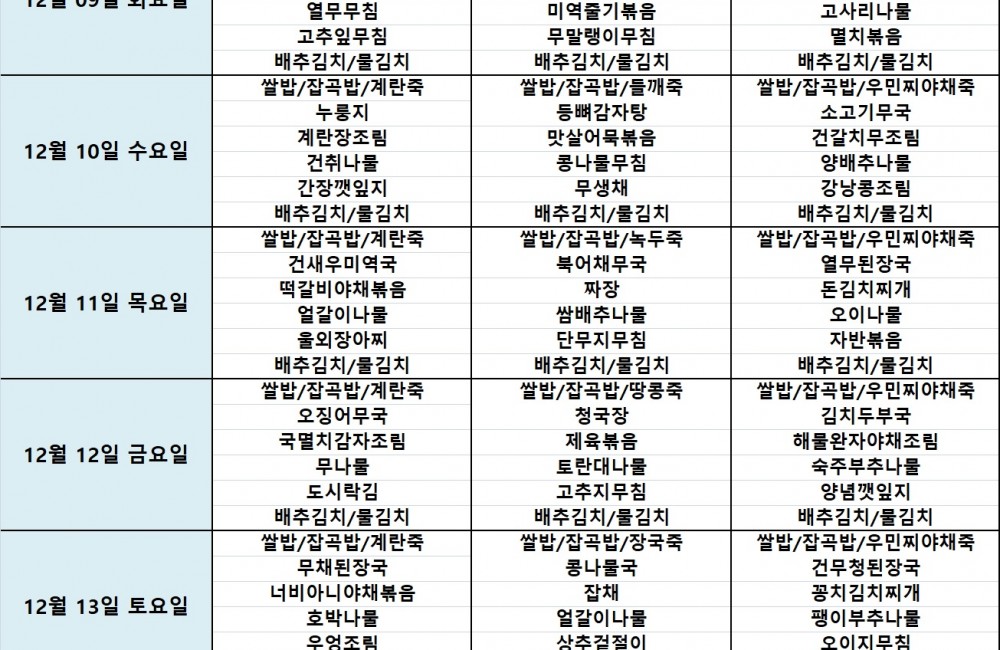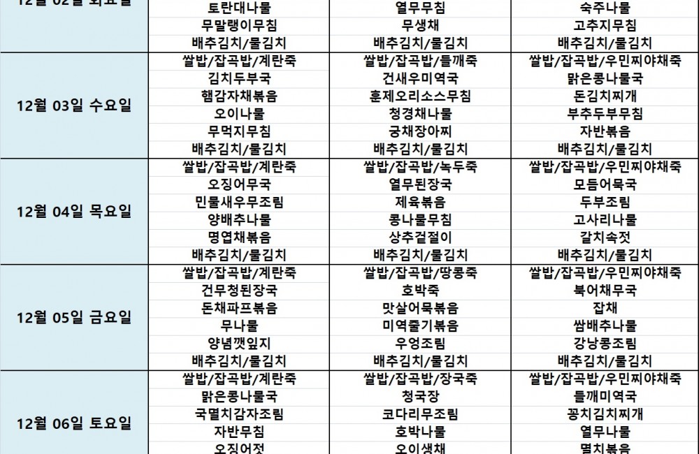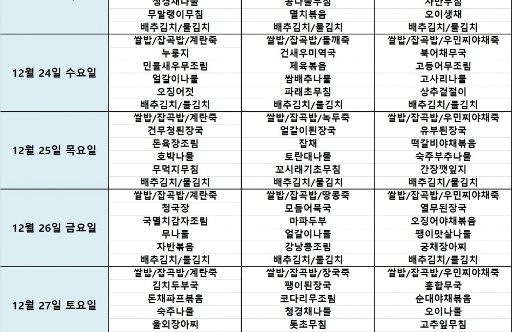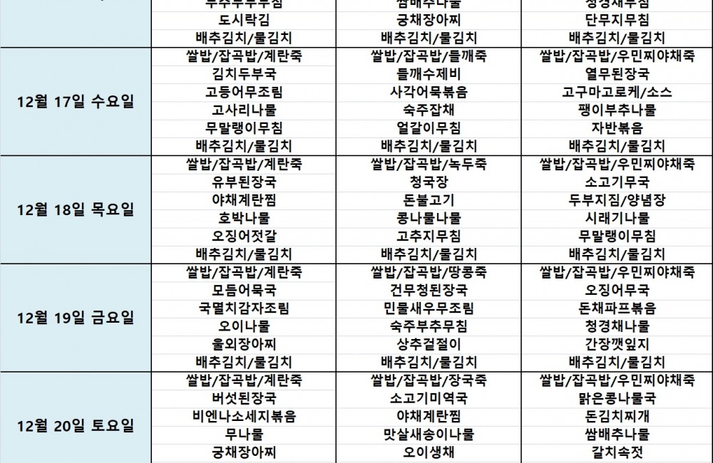 식단표 4 페이지