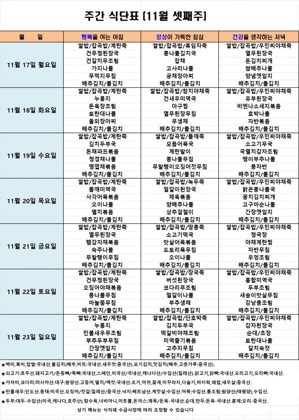 2025.11.17 ~ 2025.11.23 식단표